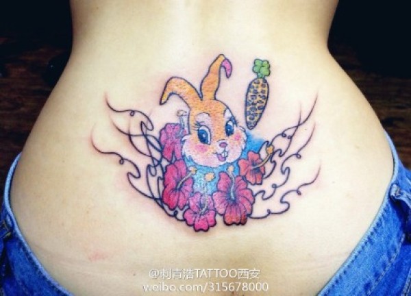 美女腰部可爱潮流的小兔子纹身图案_腰部纹身图案大全_纹身图吧