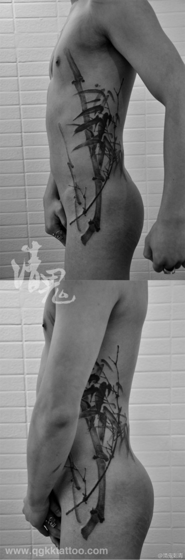男人侧腰经典潮流的水墨竹子纹身图案_腰部纹身图案大全_纹身图吧