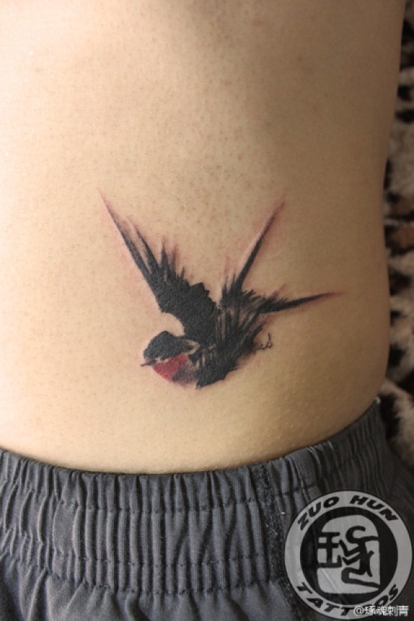 美女腰部潮流好看的水墨小燕子纹身图案_腰部纹身图案大全_纹身图吧