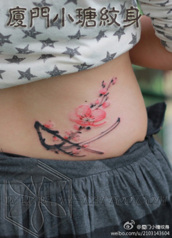 美女腰部漂亮唯美的梅花纹身图案_腰部纹身图案大全_纹身图吧