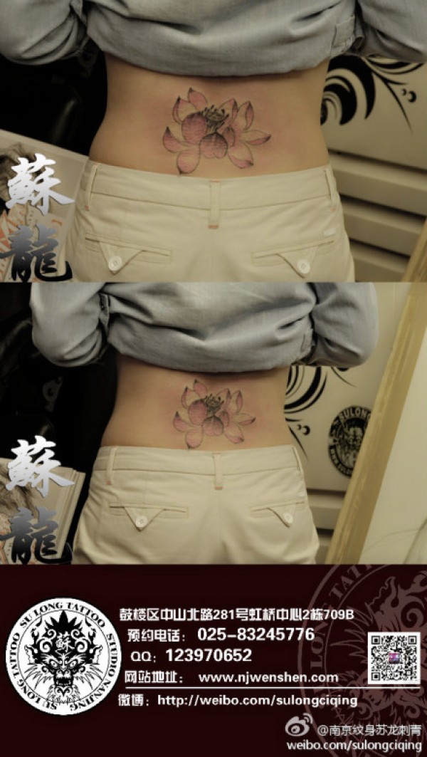美女腰部唯美漂亮的粉色莲花纹身图案_腰部纹身图案大全_纹身图吧