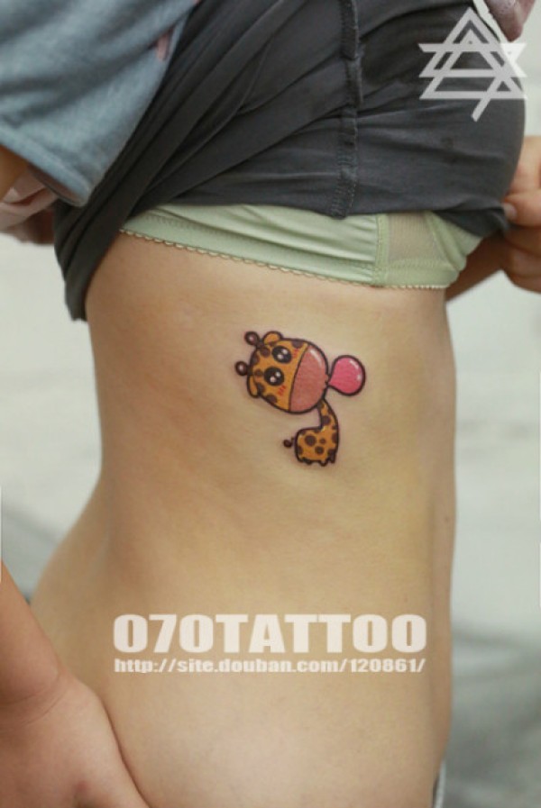 美女侧腰可爱的小鹿纹身图案_腰部纹身图案大全_纹身图吧