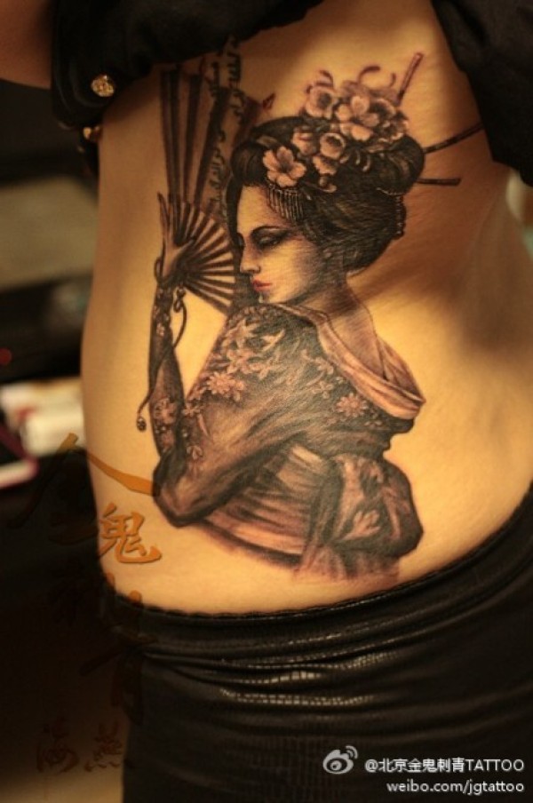 腰部漂亮的美女艺妓纹身图案_腰部纹身图案大全_纹身图吧