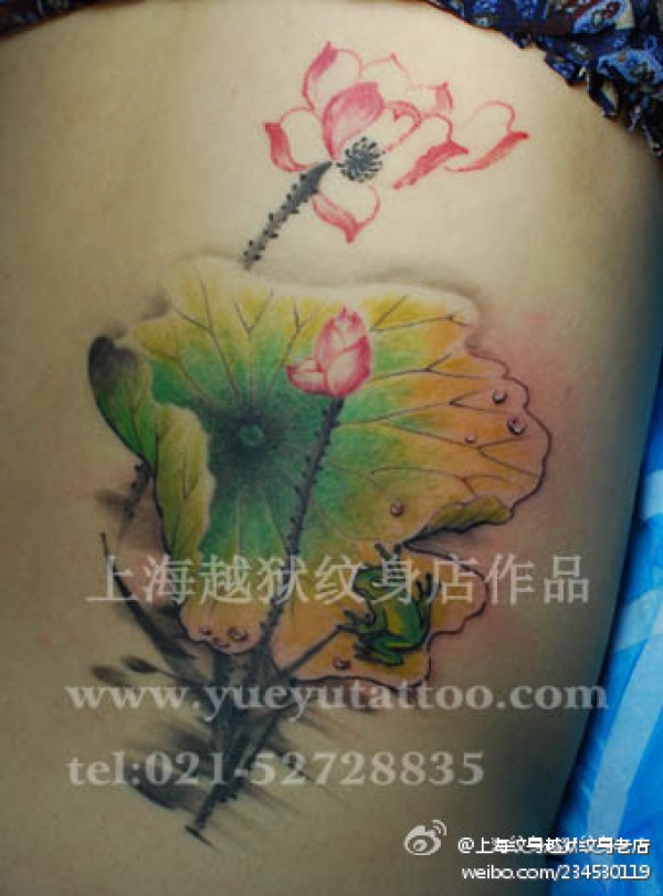 腰部莲花荷叶纹身图案纹身图片_腰部纹身图案大全_纹身图吧