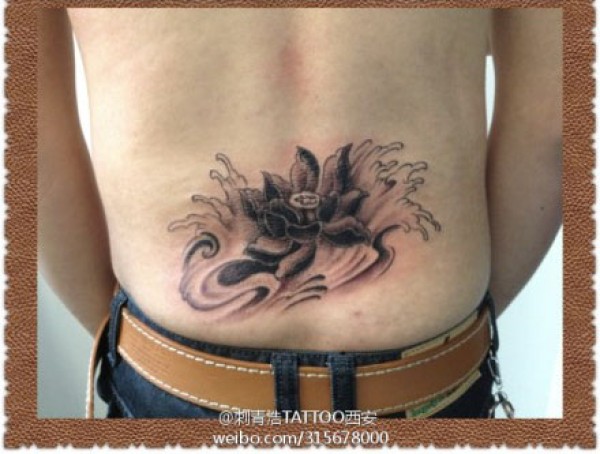 男人后腰唯美时尚的莲花纹身图案_腰部纹身图案大全_纹身图吧