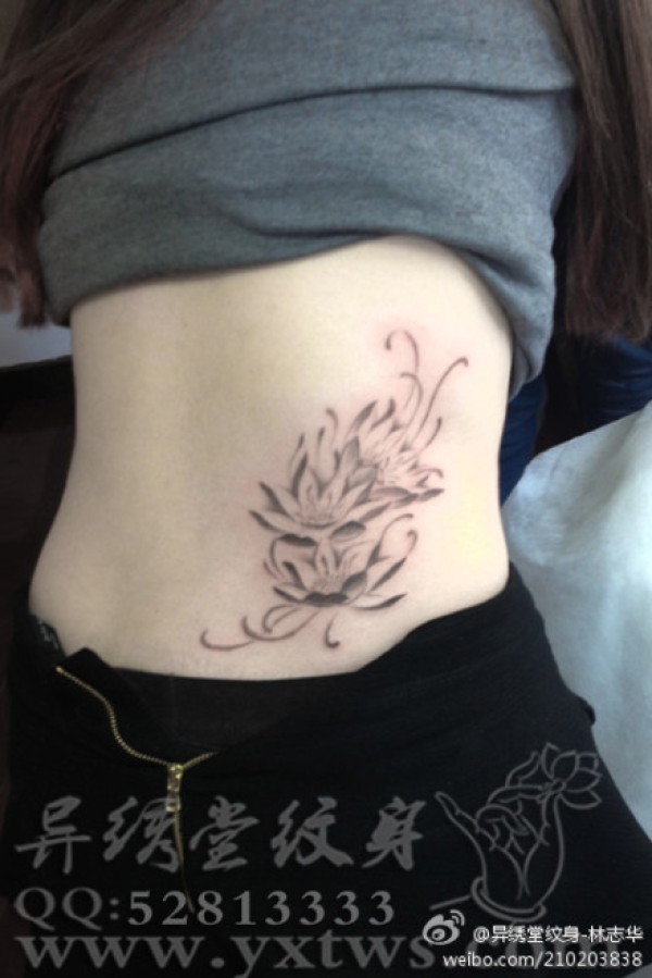 美女腰部唯美流行的莲花纹身图案_腰部纹身图案大全_纹身图吧