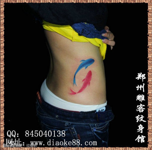 腰部唯美时尚的彩色小鱼纹身图案_腰部纹身图案大全_纹身图吧
