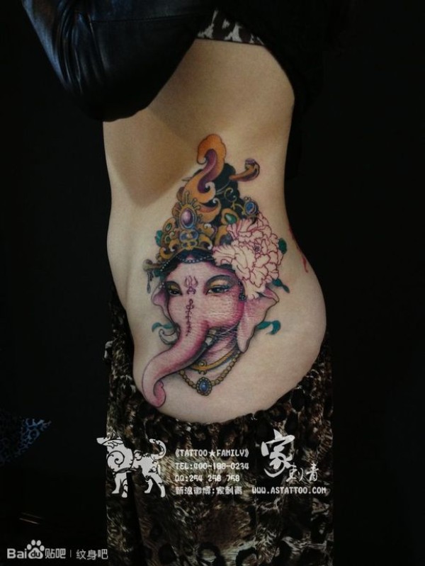 美女腰部唯美好看的象神纹身图案_腰部纹身图案大全_纹身图吧