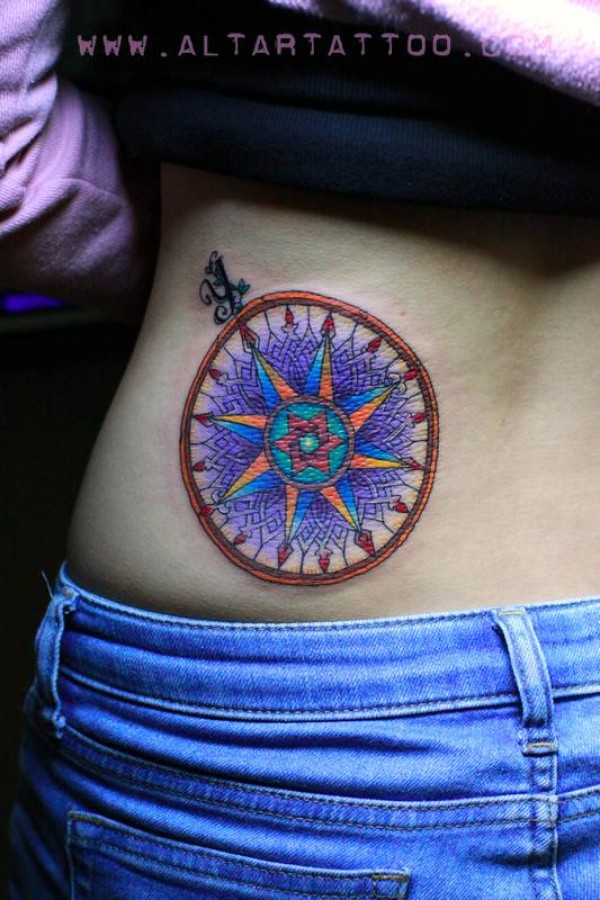 美女腰部唯美时尚的彩色六芒星纹身图案_腰部纹身图案大全_纹身图吧