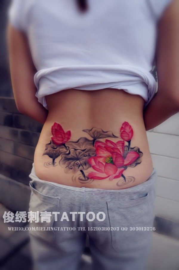 腰部莲花荷叶纹身图案纹身图片_腰部纹身图案大全_纹身图吧