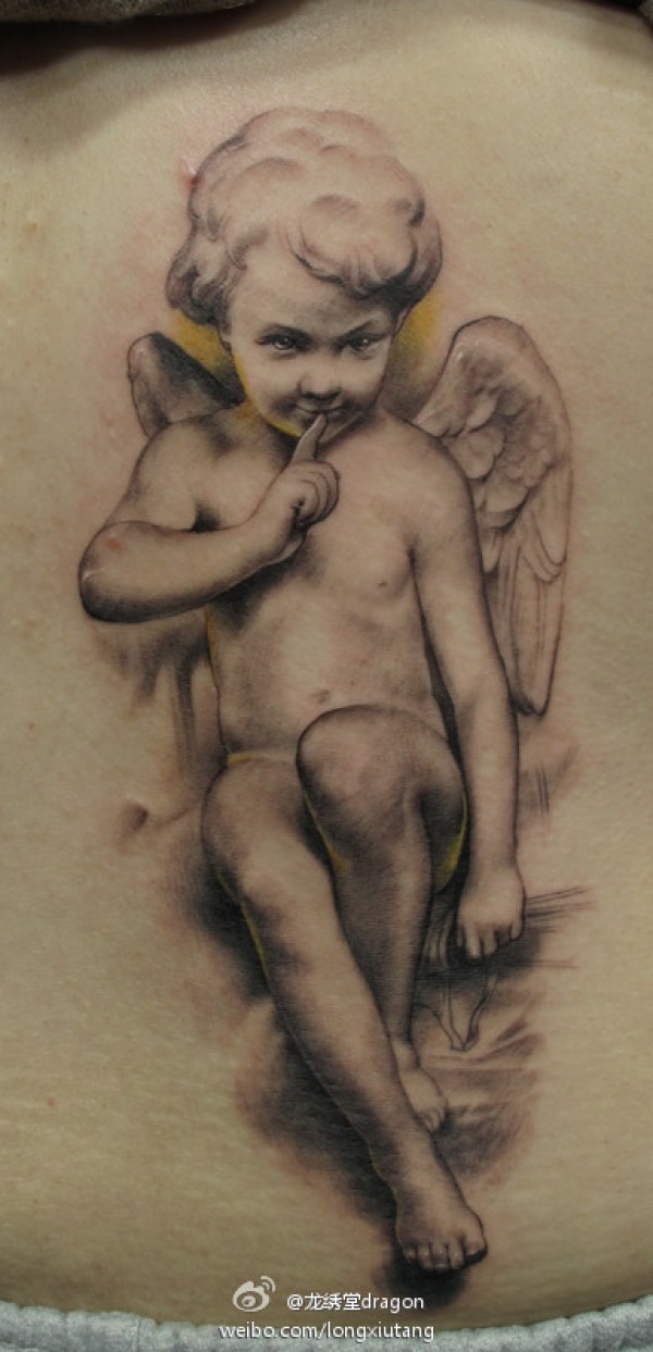 美女腰部精美写实的丘比特纹身图案_腰部纹身图案大全_纹身图吧
