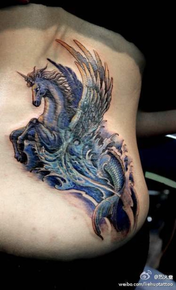 腰部经典时尚的独角兽纹身图案_腰部纹身图案大全_纹身图吧