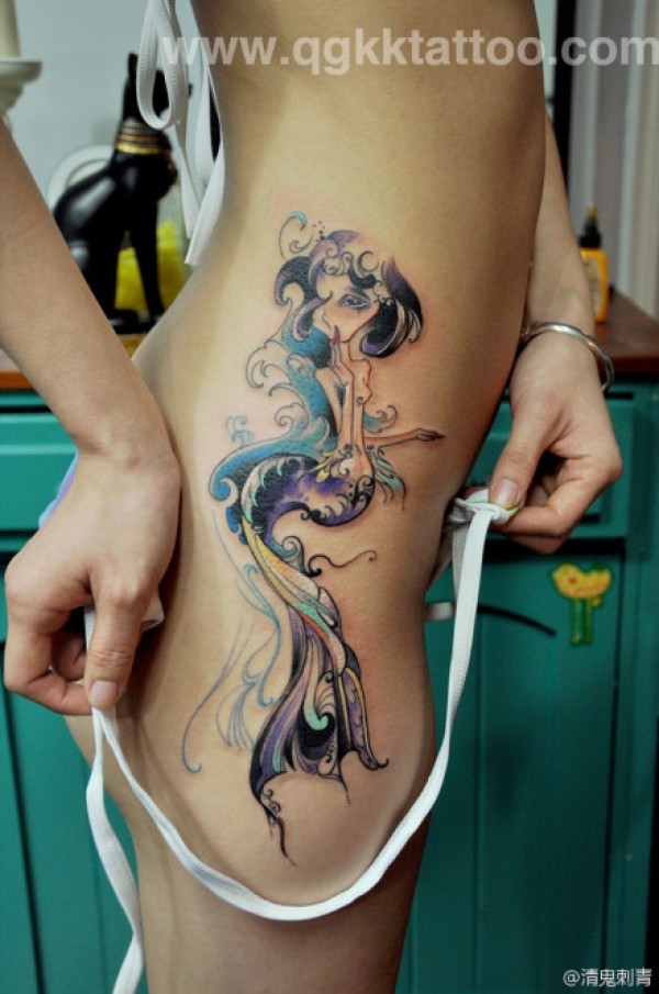 性感的美女腰部好看的美人鱼纹身图案_腰部纹身图案大全_纹身图吧