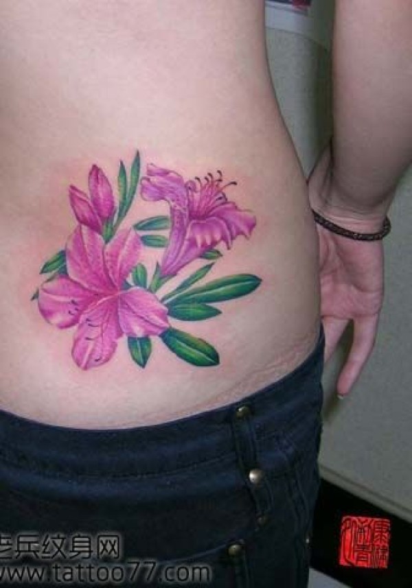 美女腰部彩色漂亮的花卉纹身图案_腰部纹身图案大全_纹身图吧