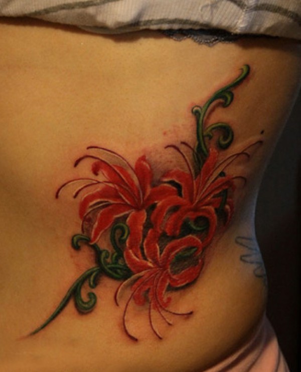 美女腰部漂亮的彼岸花纹身图案_腰部纹身图案大全_纹身图吧