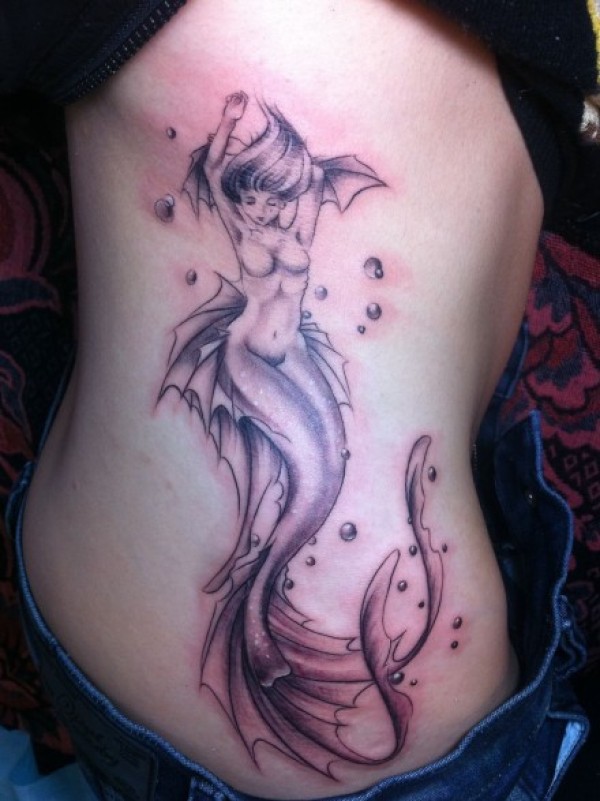 美女腰部唯美好看的美人鱼纹身图案_腰部纹身图案大全_纹身图吧