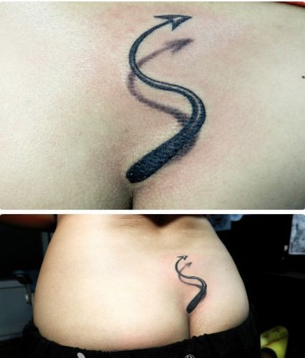 女孩子腰部一款另类的恶魔尾巴纹身图案_腰部纹身图案大全_纹身图吧