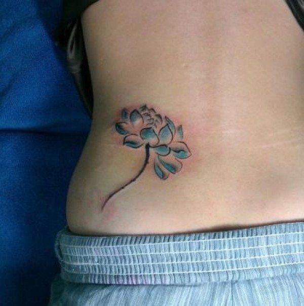 女孩子腰部唯美好看的水墨莲花纹身图案_腰部纹身图案大全_纹身图吧