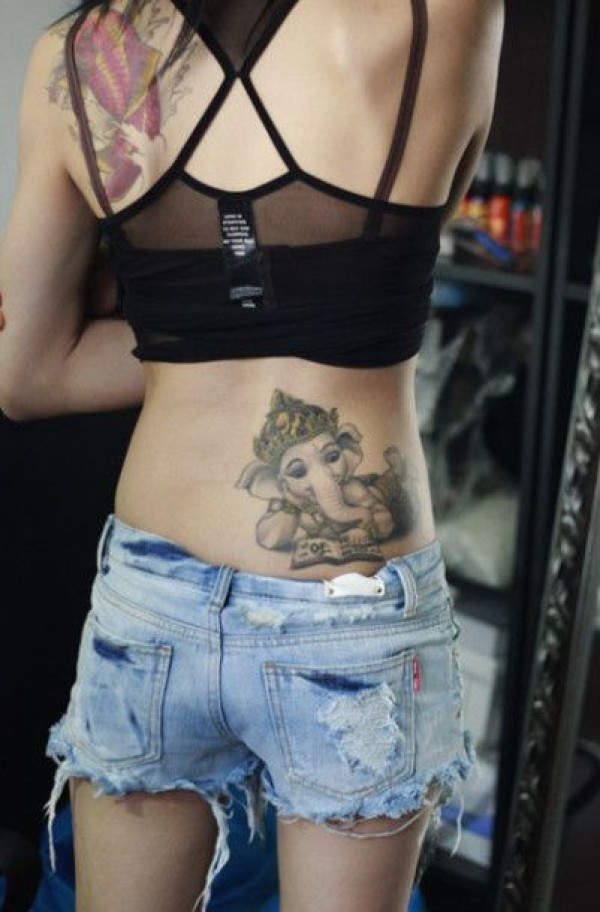 女孩子腰部一款象神纹身图案_腰部纹身图案大全_纹身图吧