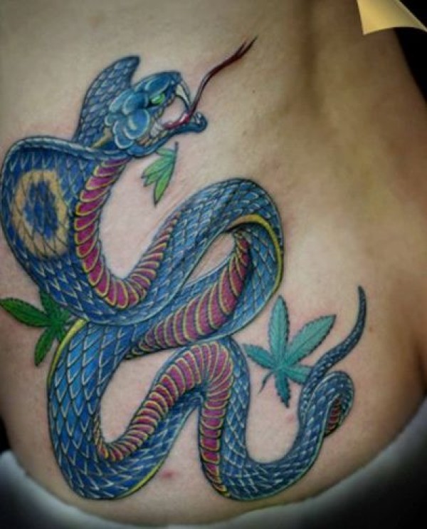 腰部帅气的一款彩色蛇纹身图案_腰部纹身图案大全_纹身图吧