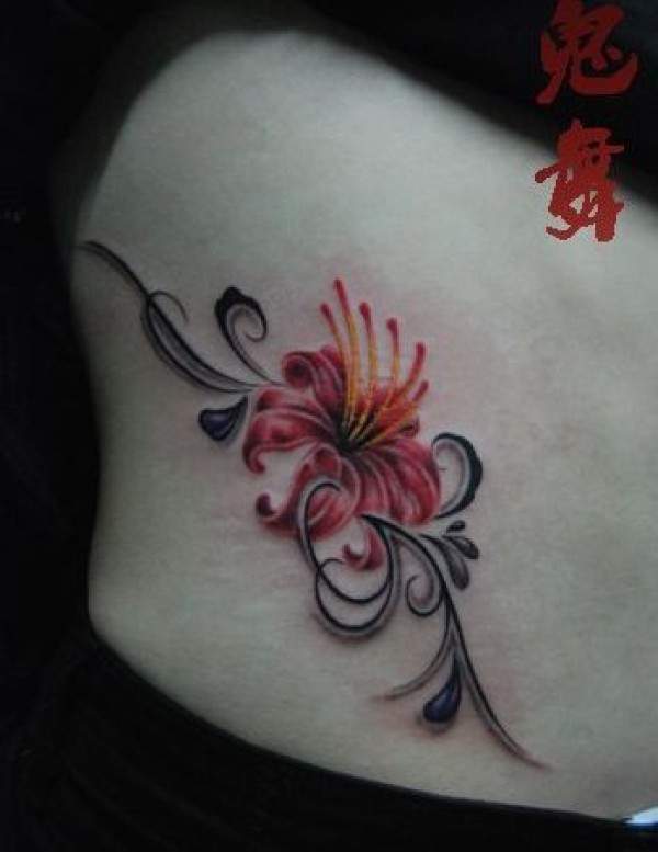 女孩子腰部一款彩色彼岸花纹身图案_腰部纹身图案大全_纹身图吧