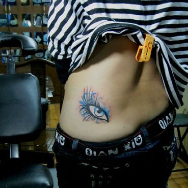 美女腰部一款彩色眼睛纹身图案_腰部纹身图案大全_纹身图吧