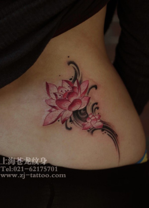 女孩子腰部时尚精美的莲花纹身图案_腰部纹身图案大全_纹身图吧