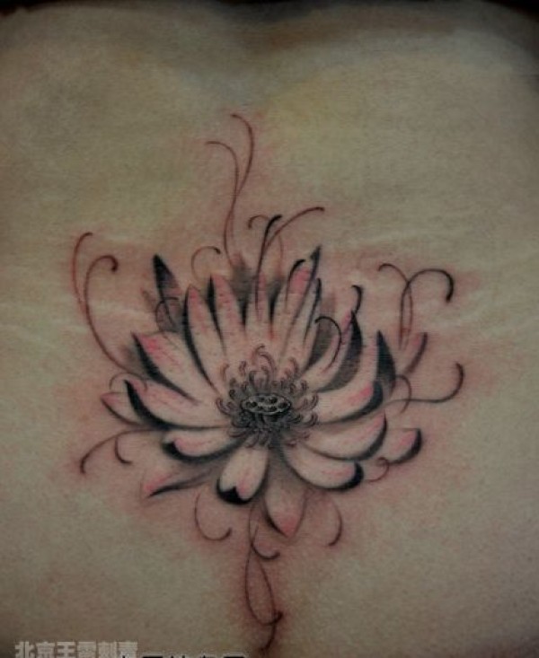 女孩子腰部时尚好看的水墨画莲花纹身图案_腰部纹身图案大全_纹身图吧