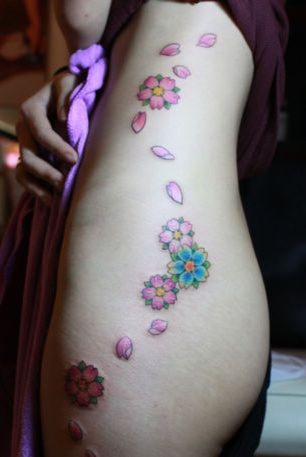 超迷人的美女侧腰樱花纹身图案_腰部纹身图案大全_纹身图吧