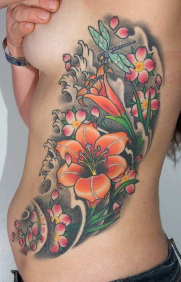 美女侧腰梅花纹身_腰部纹身图案大全_纹身图吧