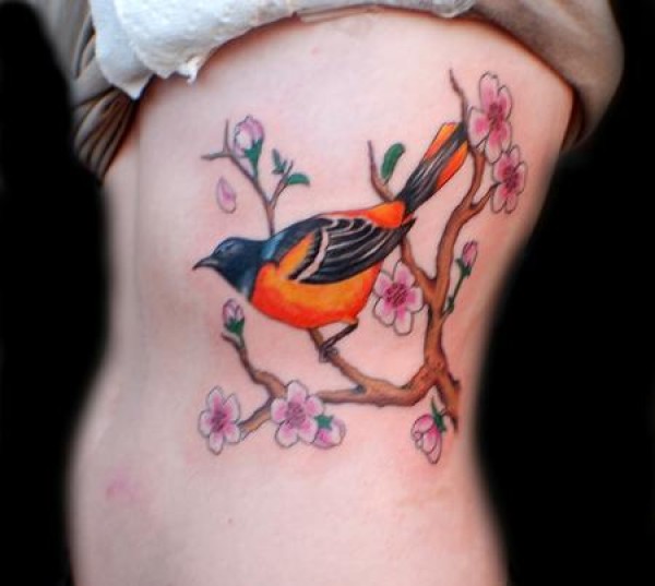 女人腰部鸟梅花纹身图案大全_腰部纹身图案大全_纹身图吧