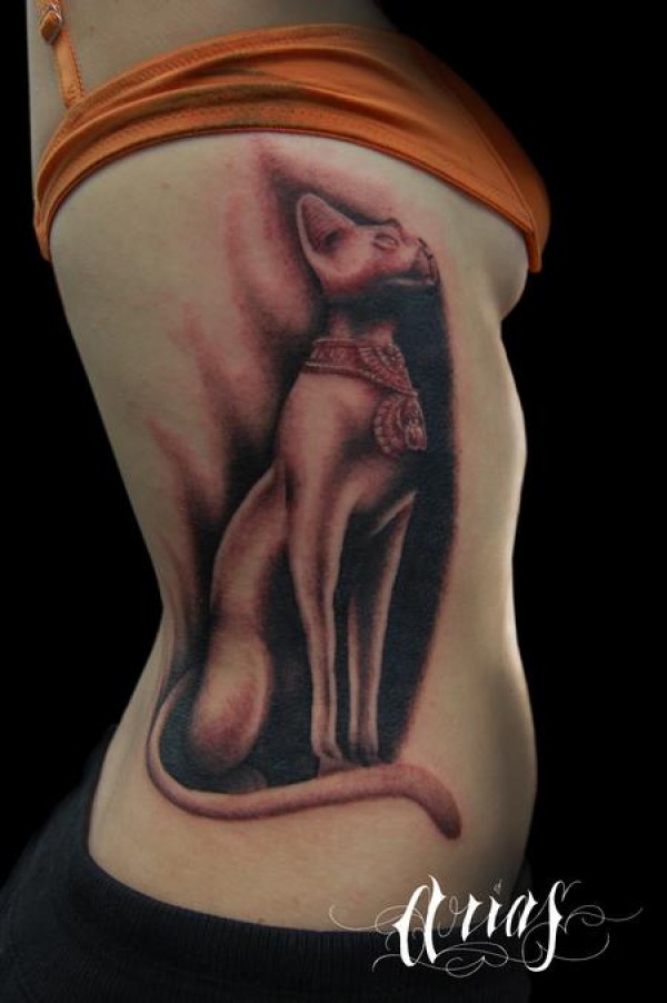 侧腰诡异猫纹身图案图片大全_腰部纹身图案大全_纹身图吧