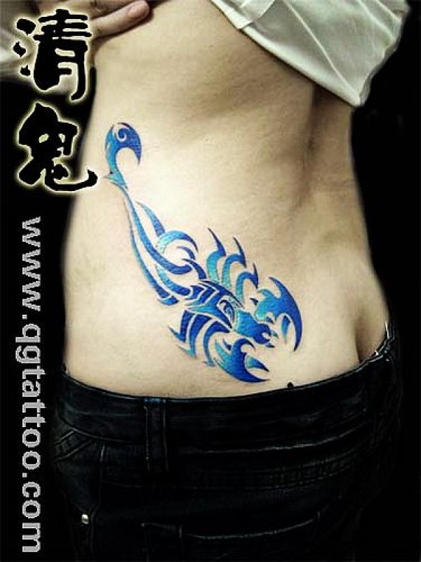 湖北武汉汉口纹身店美女腰部蝎子纹身图案图_腰部纹身图案大全_纹身图吧