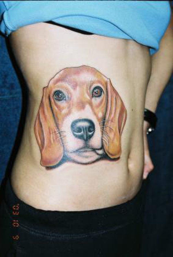 美女侧腰狗狗纹身图案图片_腰部纹身图案大全_纹身图吧