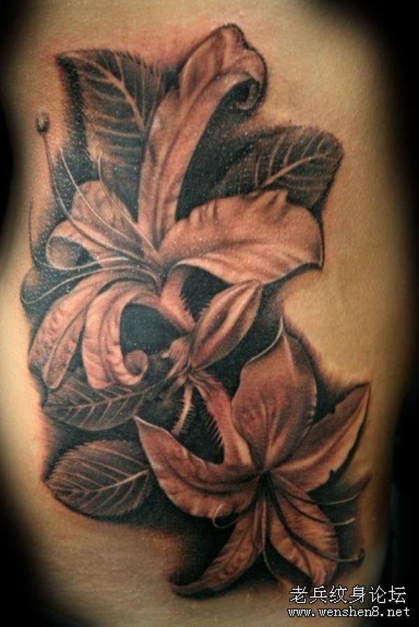 一款侧腰百合花纹身图案纹身图片_腰部纹身图案大全_纹身图吧