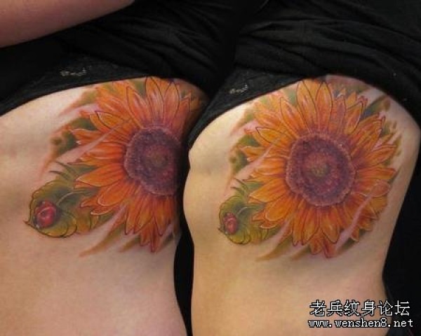 侧腰彩色向日葵纹身图案纹身图片_腰部纹身图案大全_纹身图吧