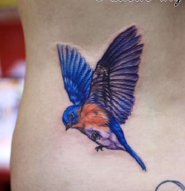 腰部彩色小鸟喜鹊纹身图案纹身图片_腰部纹身图案大全_纹身图吧