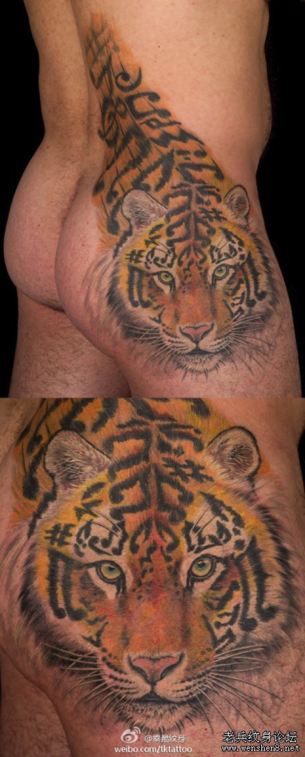 腰部彩色老虎头纹身图案纹身图片_腰部纹身图案大全_纹身图吧