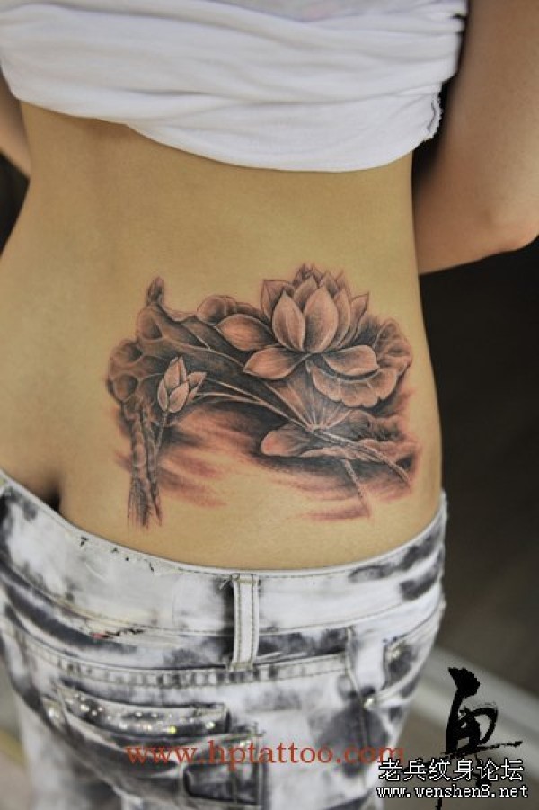 腰部莲花荷叶纹身图案纹身图片_腰部纹身图案大全_纹身图吧