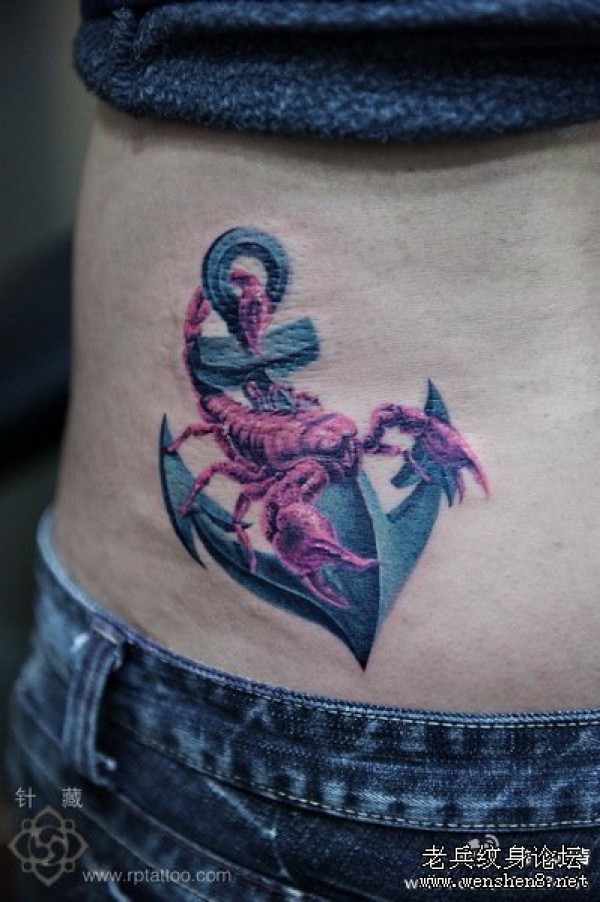 腰部彩色蝎子铁锚纹身图案纹身图片_腰部纹身图案大全_纹身图吧