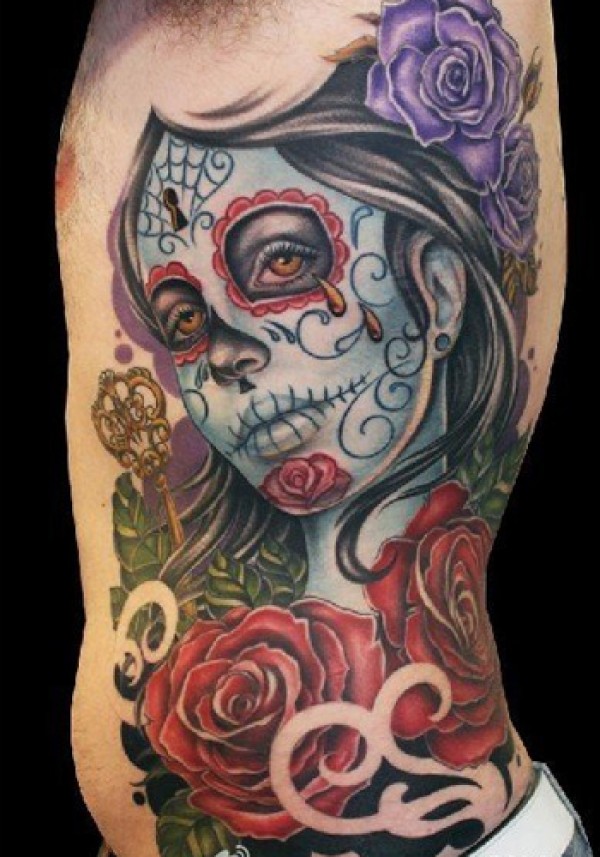 男人侧腰很酷的亡灵装美女纹身_腰部纹身图案大全_纹身图吧