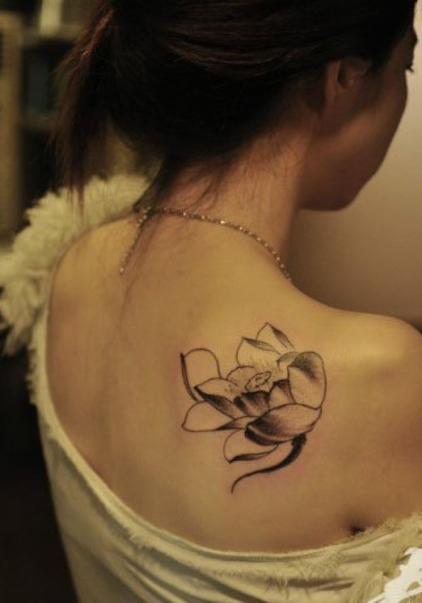 美女腰部清雅精美的莲花纹身_腰部纹身图案大全_纹身图吧