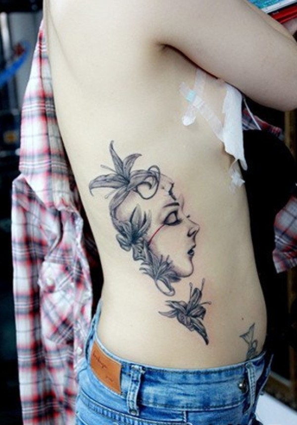男人侧腰很酷的亡灵装美女纹身_腰部纹身图案大全_纹身图吧