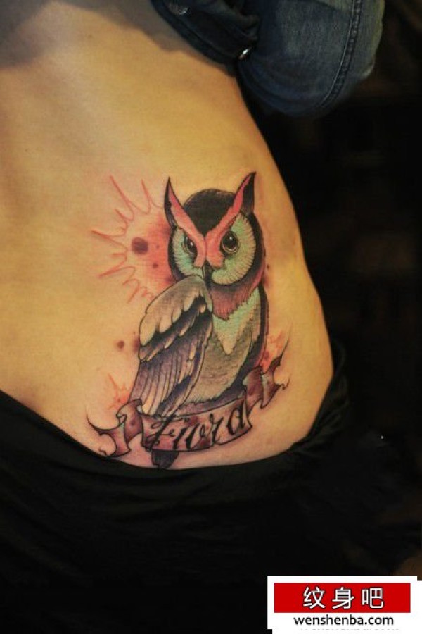 腰部可爱的猫头鹰纹身图案_腰部纹身图案大全_纹身图吧