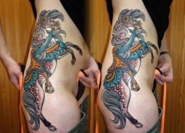 腰部彩色马纹身_腰部纹身图案大全_纹身图吧