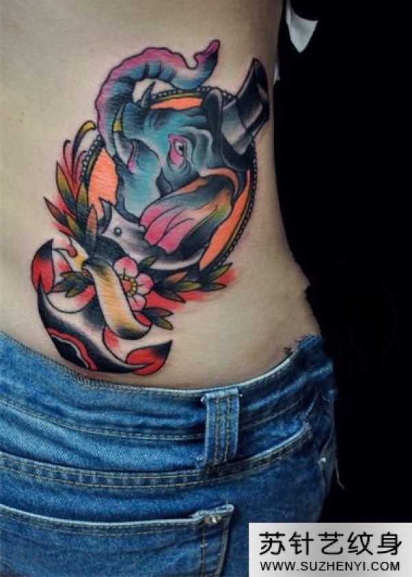 大象先生彩色腰部纹身_腰部纹身图案大全_纹身图吧