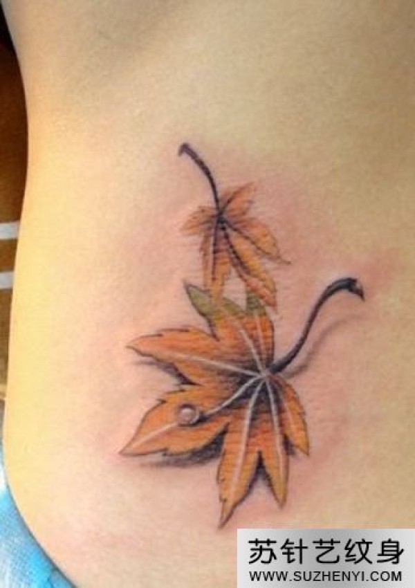 腰部枫叶个性纹身_腰部纹身图案大全_纹身图吧