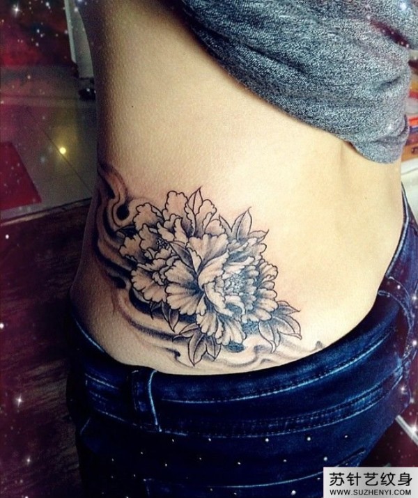 侧腰富贵的牡丹纹身_腰部纹身图案大全_纹身图吧