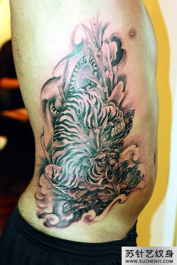 侧腰霸气老虎刺青图_腰部纹身图案大全_纹身图吧
