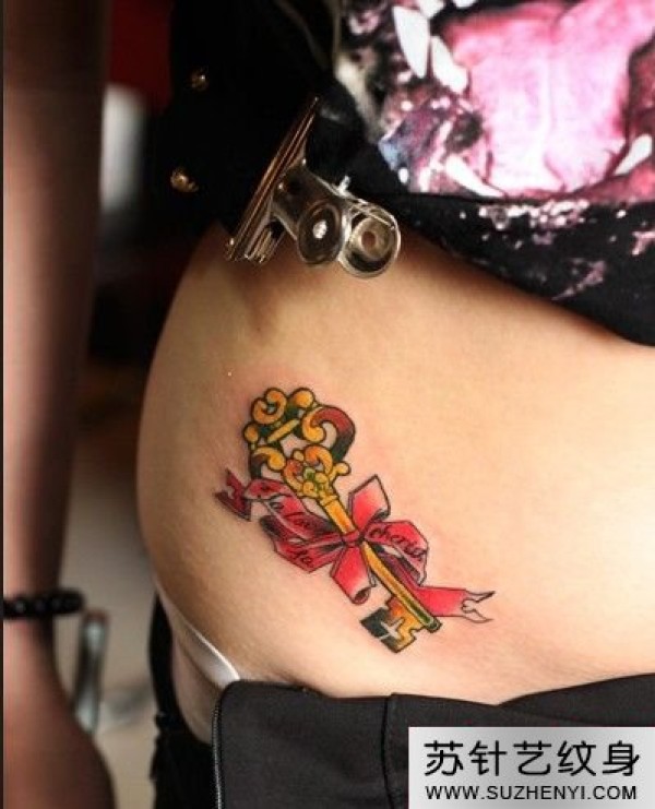 侧腰金钥匙纹身_腰部纹身图案大全_纹身图吧